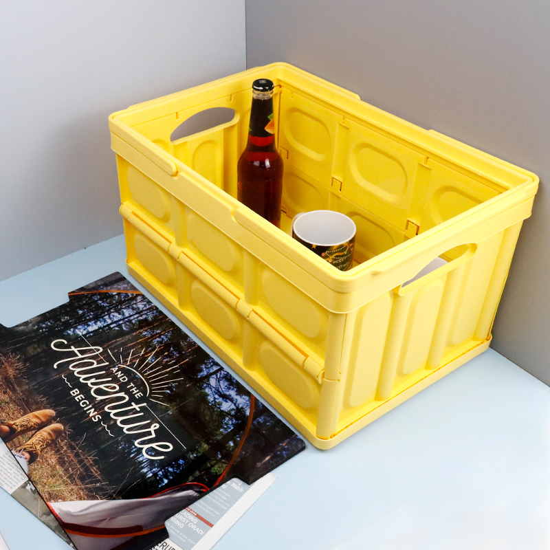 Made from high-quality plastic material, the box is lightweight yet durable. It features foldable construction for easy storage and portability, and sturdy side handles for effortless carrying.