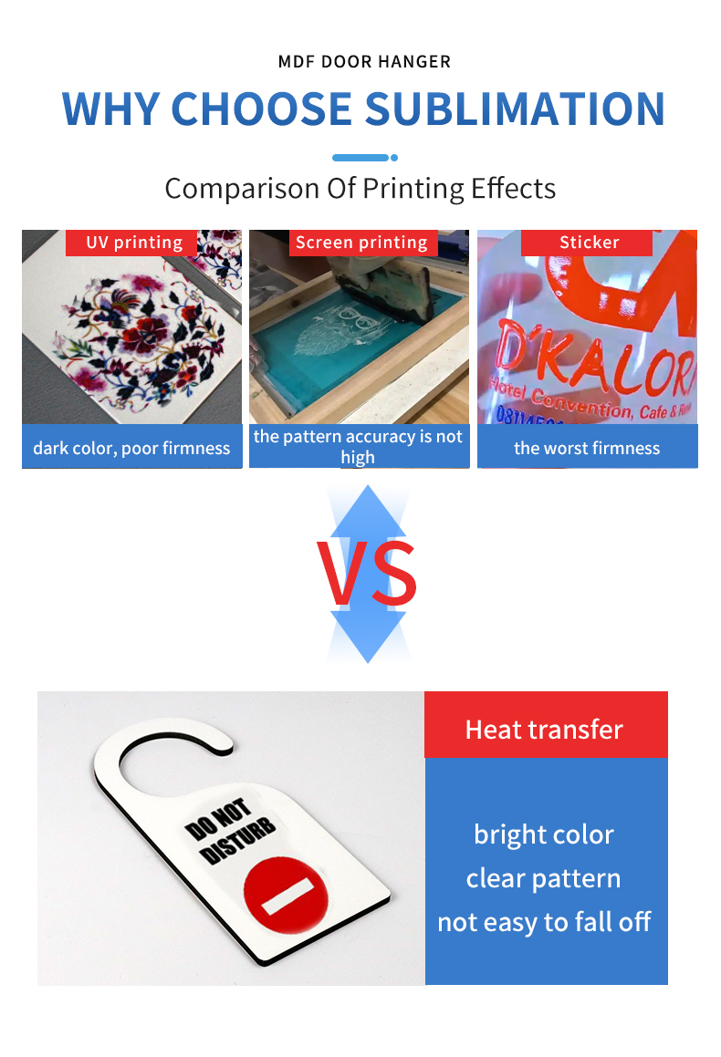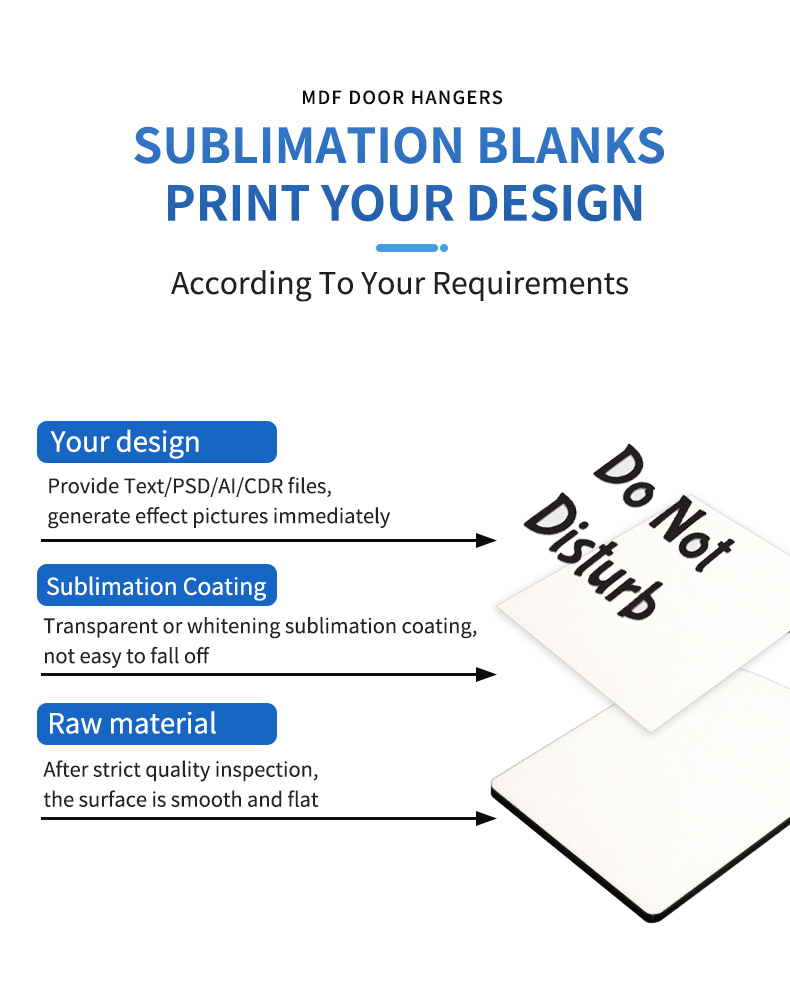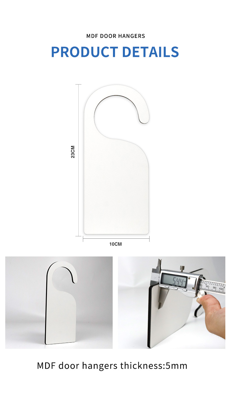 The sublimation MDF photo door hanger is made from durable, lightweight MDF with a smooth coated surface for clear and colorful printing. Its classic door-hanger shape makes it perfect for creating personalized messages such as “Do Not Disturb,” “Welcome,” “Baby Sleeping,” or room labels for kids, students, hotels, offices, and studios. You can print photos, patterns, logos, or text to turn it into a creative décor piece or a practical sign. It’s also great for gifts, event signage, and small-business custom products.
