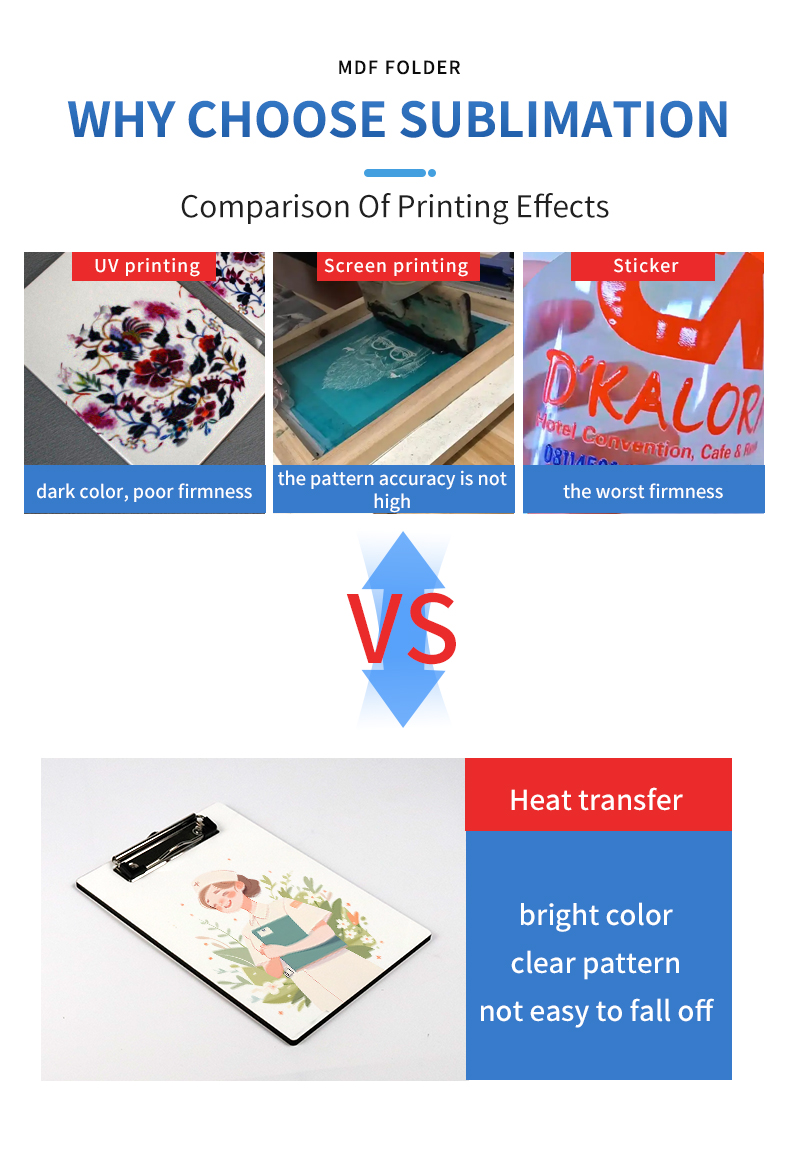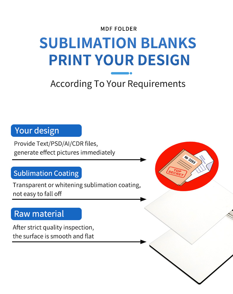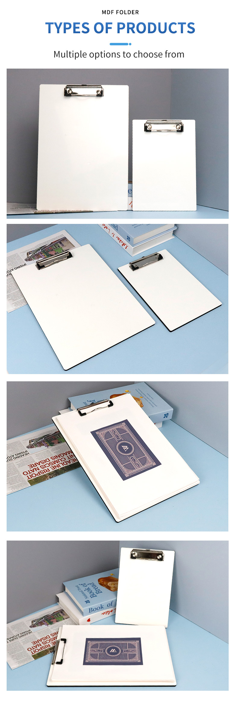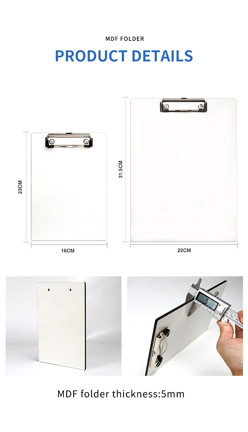 Leadsub’s Sublimation Blank MDF Photo File Clipboard, size A4, A5, thickness of 5mm. Customable in size, thickness, pattern, the surface has been coated with premium sublimation coating and protective film, you can transfer your design to the frame using a flat heat press machine.