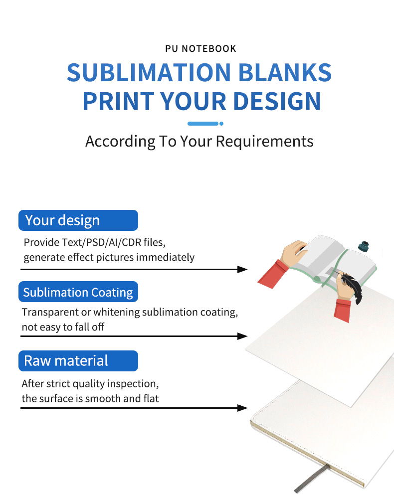 The sublimation PU leather notebook is made from soft, durable PU leather with a smooth coated surface that allows your printed designs to look clear and vibrant. You can customize the cover with photos, patterns, quotes, names, or company logos to create a stylish and personal notebook. It’s perfect for school notes, office work, journaling, travel records, and daily planning. This notebook also makes a great gift for students, coworkers, and clients, and is popular for custom shops and promotional branding.